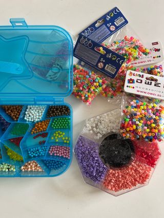 Set de abalorios y accesorios para todo tipo de manualidades y creaciones. Incluye maletín aquabeads con abalorios que se pegan con agua. - Incluye caja organizadora. - Variedad de colores y formas.