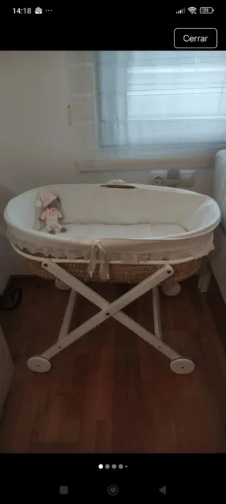Moisés para bebé en buen estado, poco uso. Ideal para los primeros meses. Estructura ligera, estable y con ruedas, con colchón incluido. Apto para usar como cuna auxiliar o de viaje. Cómodo, seguro y fácil de mover por la casa. Envíos 24/48h o recogida local. WD2506131103 moisés cuna bebé recién nacido minicuna colecho descanso dormir portátil ropa bebé muebles infantiles