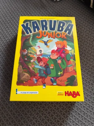 Juego de mesa cooperativo Karuba Junior de HABA. Juego cooperativo para niños de entre 4 y 8 años, de 1 a 4 jugadores. Nos encontramos en la misteriosa isla de Karuba. En las profundidades de la selva, hay maravillosos tesoros ¿podrán encontrarlos nuestros 3 intrépidos aventureros? Tened cuidado con los animales peligrosos que nos cortan el camino. Pero ¡ojo! no tenemos mucho tiempo…en el horizonte se divisa un barco pirata en busca de los cofres de tesoros.