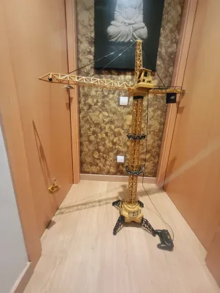Grúa de juguete de color amarillo, ideal para niños. - Base con patas. - Mástil alto. - Brazo extensible. - Incluye mando a distancia.