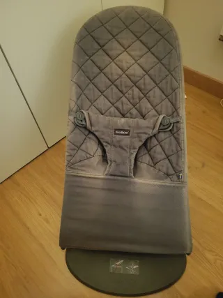 Mecedora BabyBjörn en color gris, ideal para bebés. Su diseño ergonómico proporciona comodidad. - Tapicería acolchada. - Estructura metálica. - Plegable para fácil almacenamiento.