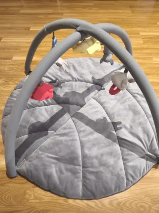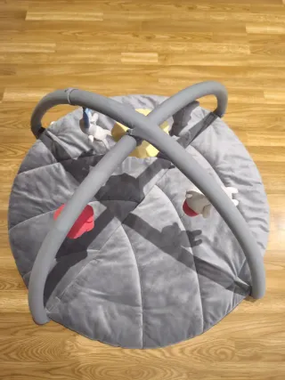 Gimnasio de actividades para bebés, ideal para estimular el desarrollo. - Colchoneta suave y acolchada. - Arcos superiores con juguetes colgantes. - Diseño en tonos grises.