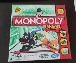 Juego de mesa Mi Primer Monopoly Junior, ideal para los más pequeños. Un emocionante juego de propiedades inmobiliarias. - Diseñado para niños a partir de 5 años. - Para 2 a 4 jugadores. - Requiere montaje por parte de un adulto.