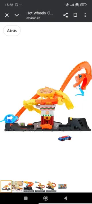Pista de carreras Hot Wheels con varios coches. Pizza slam cobra attack - Incluye pista de carreras. - Varios coches de juguete.