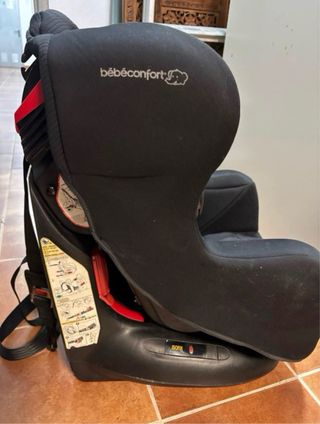 Silla de coche negra para bebé, con arnés de seguridad de 5 puntos. - Diseño acolchado para mayor comodidad. - Funda extraíble para facilitar la limpieza. - Sistema de ajuste del arnés.