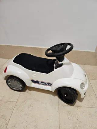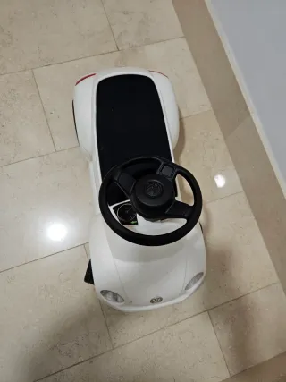 Cochecito infantil con diseño del icónico VW Beetle. - Color blanco. - Asiento negro. - Volante negro.