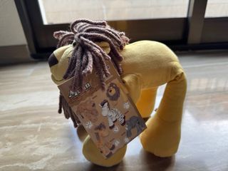 Adorable peluche de león con melena de lana. - Material suave y agradable al tacto. - Diseño infantil y simpático. - Color amarillo y marrón.