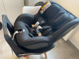 Silla de coche Britax Romer Dualfix con función giratoria. Color negro. Desde los 40cm a 105cm ya que incluye el reductor para recién nacido. Sistema de arnés de 5 puntos. Reposacabezas ajustable. Está en muy buen estado con poco uso por haber estado en un coche secundario que no es el familiar