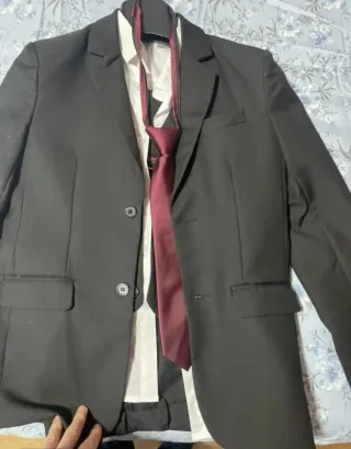 Traje de chaqueta para niño de 12 años. - Chaqueta negra. - Camisa blanca. - Corbata burdeos. - Pantalon Usado solo una vez. Regalo zapatos.