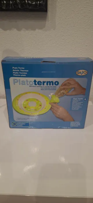 Plato térmico de la marca Saro para bebés. Mantiene la comida caliente. - Diseño con patito. - Incluye embudo. - Apto para lavavajillas.