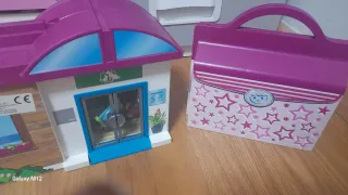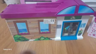 Set de Playmobil de veterinaria y vestidor. - Incluye la casa de la veterinaria con detalles de madera. - Techo rosa con ventanas curvas. - Puerta doble de cristal. - Accesorios de planta y cartel. - Ventanas con macetas.