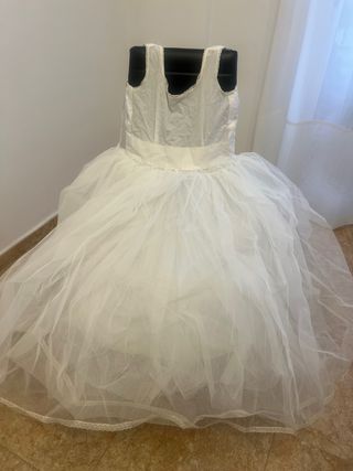 Alçaor de tul blanco de la marca Mavimar para niña, con cuerpo. Largo: 80cm Medidas aprox del cuerpo: -Sisa: 33cm -Cintura a hombro: 37cm -Cintura: hasta 69cm