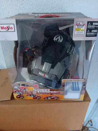 Coche teledirigido de Maisto serie Street Troopers lanza cohetes. Es un coche tipo Transformers impecable,con su caja original, muy poco usado, ver foto de ruedas como nuevas. Tiene 3 cohetes con ventosa que dispara cuando está de pie.