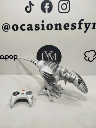 Divertido robot dinosaurio con mando a distancia. - Diseño futurista en color blanco y gris. - Mando incluido para controlarlo. APENAS USO, SUPER DIVERTIDO, PILAS NO INCLUIDAS.