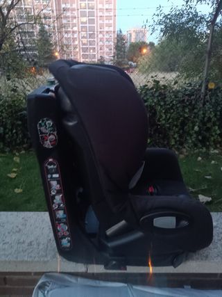 -Sin Isofix, se ancla con un tensor al cinturón de seguridad. -Grupo I de 9 a 18Kg. -El asiento es reclinable y puede girarse 90 grados, reposacabezas ajustable en altura. -Se entrega con las fundas recién lavadas.