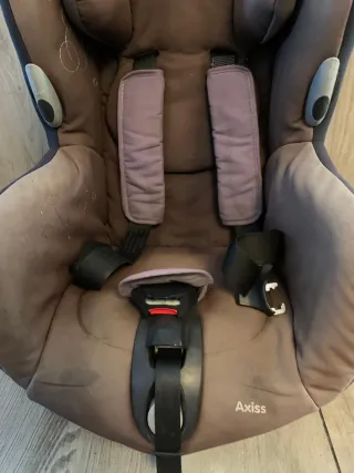 Silla de coche Bébé Confort Axiss en color marrón y gris. Diseñada para la seguridad y comodidad de los más pequeños. - Sistema de arnés de 5 puntos. - Fundas acolchadas para los cinturones. - Base giratoria para facilitar la instalación.