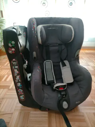 Silla de coche Bebeconfort con función giratoria. Diseñada para la comodidad y seguridad. Grupo 1, desde 9 a 18 kg. De 9meses a 4 años aproximadamente. Marca bebé confort modelo axiss. No tiene Isofix ,sujeta con el cinturón. Muy cómoda para colar y sujetar al niño ya que se gira. - Tapicería acolchada. - Sistema de arnés de 5 puntos. - Funda extraíble para lavado.