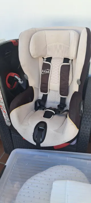 Silla de coche para bebé marca Bebéconfort, modelo Axiss, grupos 1 y 2. Se agarra por sistema de carraca que transmite muuuuucha seguridad. Queda tenso y la silla no se mueve nada. Silla de calidad, cómoda para el peque y para los mayores ya que rota 90 grados para facilitar el abrochar y desabrochar. Usada pero en perfectas condiciones. Funda lavable .