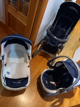 Sistema de viaje Chicco Living. - Incluye silla de paseo, capazo y silla de coche de grupo 0. - Isofix para silla de coche -Arnés de seguridad de 5 puntos - Color azul marino y blanco. Otros accesorios adicionales. Todas las partes de tela, pueden ser removidas para ser lavadas, cuando se requiera.
