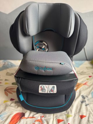 Silla de coche Cybex Juno 2-Fix en buenas condiciones. Incluye la silla y el reductor. - Grupo 2/3 (de 15 a 36 kg). - Sistema Isofix. - Tapicería azul marino y turquesa.