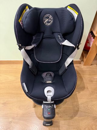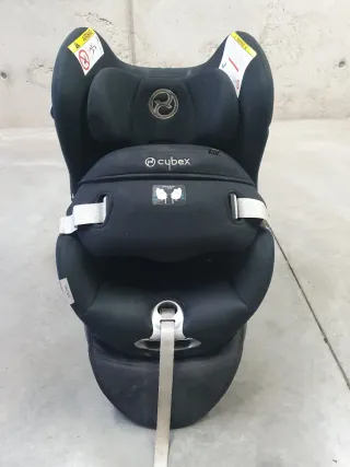 Silla de coche Cybex Sirona M2 i-Size con isofix. Es una silla fija que puede ir en sentido a la marcha o en sentido contrario. No la quisimos giratoria ya que en caso de accidente puede haber riesgos de que el sistema giratorio colapse. No ha sufrido ningún accidente y solo ha sido utilizada por un niño. Se entrega aspirada y lavada con jabon hipolaergénico sin perfumes, lista para usar con recien nacidos. Tiene todos sus protectores y se entregan unos recambios adiccionales. Incluye unas espumas negras que se usan los primeros meses del bebe. Siempre usada con funda (incluida). Esta sí tiene marcas de uso, por eso está cuidada.