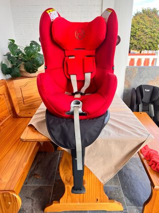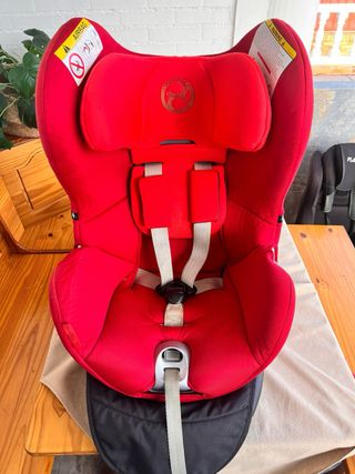 Silla de coche Cybex Sirona en color rojo, apta para los grupos 0+ y 1. (0-18kg o 0 a 4 años) - Diseño ergonómico. - Sistema de arnés de 5 puntos. - Funda extraíble y lavable. - Sentido contrario a la marcha hasta 18kg - Función rotatoria 360 - Ajuste para sentado/reclinado - Sistema Isofix - Cojín de seguridad Esta en buen estado, no dispongo del reductor de recién nacido.