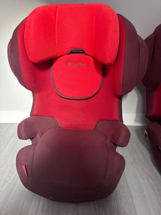 Silla de coche Cybex Pallas 2-Fix en color rojo. Está usada pero en buen estado - Válida para grupos 1/2/3 (9-36 kg). - Incluye reposacabezas y arnés ajustables. - Tapicería de color rojo oscuro.
