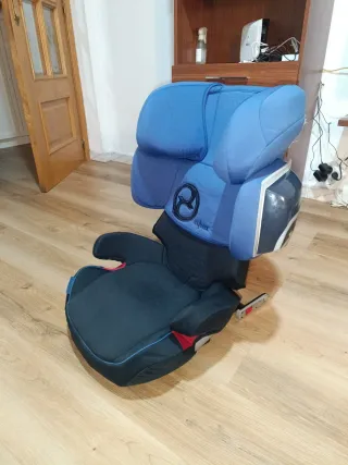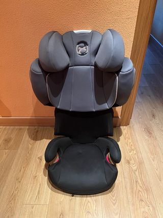 Silla infantil para coche con elevador de asiento con respaldo y reposacabezas sobre una base ajustable con cojines de seguridad regulables en altura. - Cuenta con sistema se sujeción ISOFIX-CONNECT. - Silla CYBEX PALLAS M-FIX Grupo 1 de 9 a 18kg - Silla CYBEX Soultion Grupo 2 - 3 de 15 a 36kg Todos sus componentes se encuentran en perfectas condiciones y estado de funcionamiento.