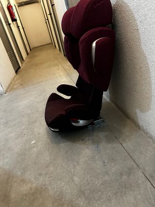 Silla de coche Cybex en color burdeos, adecuada para los grupos 1, 2 y 3. Diseñada para acompañar el crecimiento del niño. - Tapicería acolchada. - Reposacabezas ajustable. - Símbolo de la marca integrado.