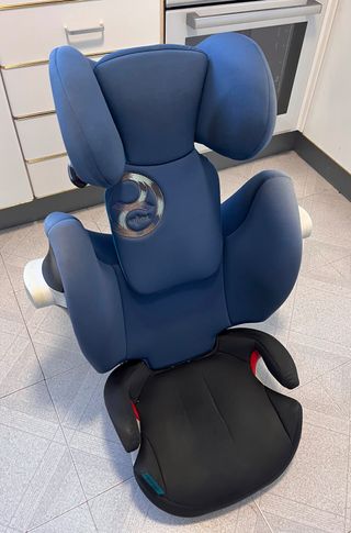 Silla de coche de la marca Cybex, modelo juno 2-fix - Conectores Isofix - Cojín de seguridad ajustable - Reposacabezas ajustable. - Protección Lineal en Impactos Laterales (Sistema L.S.P. Plus) - Función de reclinado (al instalarse con conectores Isofix) - Peso muy ligero - Diseño en color gris oscuro y negro, y detalles en color azul. - Precio compra 220€