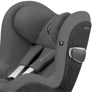 Silla de coche de la marca Cybex, diseñada para la seguridad y comodidad. - Tapicería oscura. - Reposacabezas ajustable.
