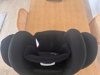 Silla de coche Cybex en color negro con detalles grises, giratoria con sujeción delantera de seguridad - Incluye arnés de seguridad de 5 puntos. - Reposacabezas ajustable. - Funda acolchada para mayor comodidad. Recoger en el barrio del Pilar