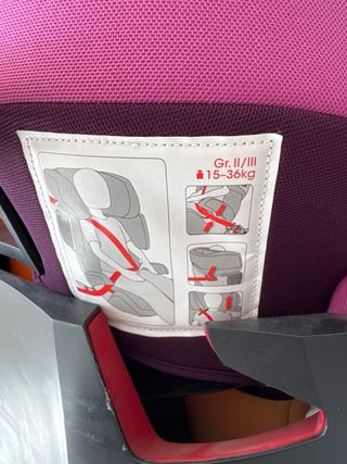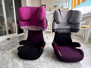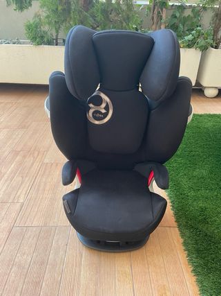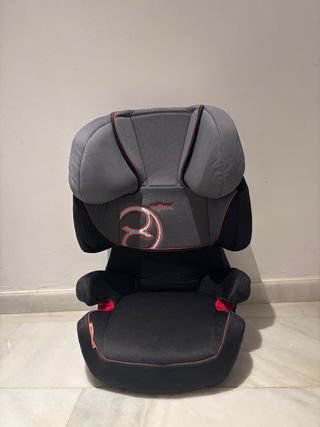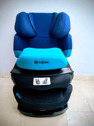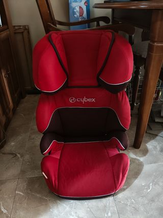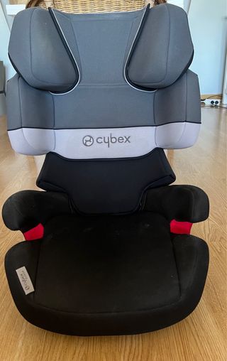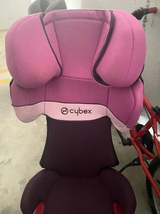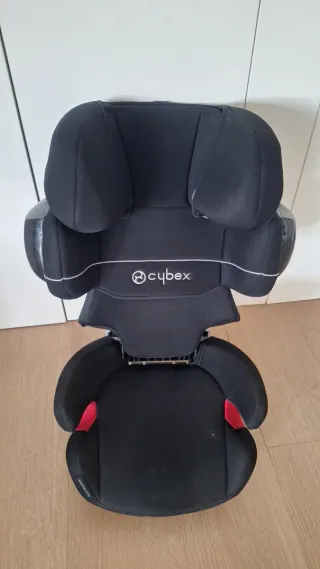 Silla de coche Cybex para grupos 2 y 3. Diseñada para ofrecer comodidad y seguridad. - Tapicería acolchada. - Reposacabezas ajustable. - Diseño ergonómico. - Anclaje al coche mediante Isofix. - Protección lateral extra. - El cojín de seguridad ayuda a reducir el riesgo de lesiones en el cuello y es muy fácil de ajustar. - Cuando el niño sea más grande, se sustituye el cojín de seguridad por el cinturón del coche. (hasta los 105 cm o 21 kg). - Fácil de abrochar/ajustar en cualquier etapa. - Solo se ha usado para viajes, el resto del tiempo usábamos otro coche con otra silla.