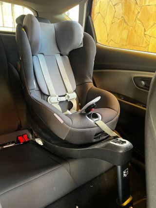 Silla de coche Cybex con sistema Isofix para una instalación segura y sencilla. - Color negro. - Diseño moderno y funcional. La silla está perfecta. Pues debido a necesidades familiares para un solo bebé necesitamos 3 vehículos con respectivas silla, por lo tanto no son de uso continuado ADMITO OFERTAS OFERTAS