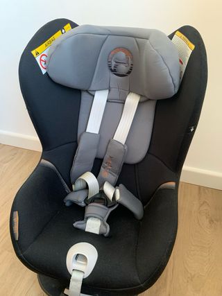 Con accesorio frontal para los más pequeños. Sistema de fijación al coche Isofix que aumenta la seguridad. Protección en los laterales. Tiene decoloración en un lateral, por lo demás en muy buen estado.