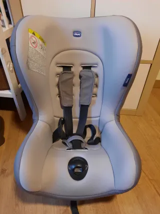 Silla de coche de la marca Chicco, en color gris. - Diseño ergonómico. - Arnés de seguridad de 5 puntos. - Funda extraíble y lavable.