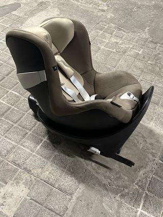 Silla Cybex Sirona Coffe Bean, grupo 0+/1 en muy buen estado. Tiene base Isofix y una pata para tercer apoyo. Reposacabezas ajustable en altura. De las sillas más seguras del mercado en seguridad. En esta versión se incluyen nuevos estándares de seguridad contra impactos laterales y frontales. Consta de rotación 360º para facilitar la colocación del niño en la silla. Con una sola mano se puede girar la silla, siendo así más cómodo y fácil además que asegura menos tensión en la espalda a los padres. Cinturón de seguridad de 5 puntos de sujección. Puede situarse en ambos sentidos, contra la marcha o a favor.