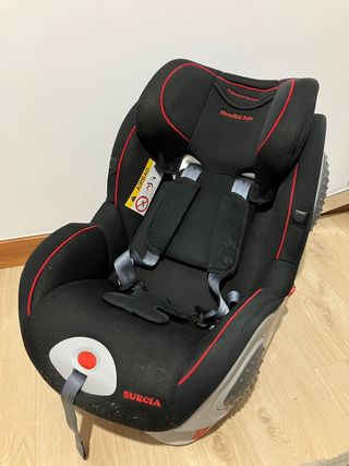 Silla coche Mondial Safe Suecia, grupo 0+/1 (0-18kg), apta para rescate pediátrico. Con manual. Se puede colocar tanto a contramarcha como en el sentido de la marcha. Se puede fijar tanto con sistema Isofix como con el cinturón del coche en caso el coche no disponga de Isofix.