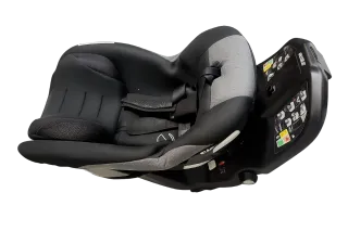 Silla de coche en color gris oscuro, con sistema de arnés de 5 puntos, alguna marca de uso, todo funciona a la perfección, sin ningún tipo de fallo. - Diseño acolchado para mayor comodidad. - Incluye reductores para recién nacidos. - Indicadores de instalación en la base luminosos. - ISOFIX. - Giratoria 360 y reclinable en 5 podiciones. - Contramarcha.