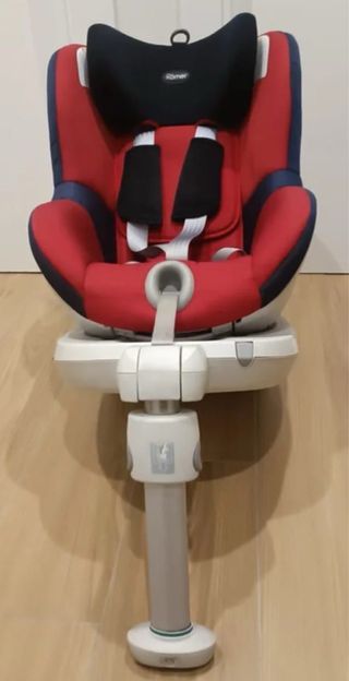 Silla de coche Romer en color rojo y azul marino, con base giratoria. - Reposacabezas ajustable. - Arnés de seguridad de 5 puntos. - Funda extraíble y lavable. Silla de coche Romer Britax Dualfix Grupo 0/1. Con botón para girar la silla sin esfuerzo. Precio 150€