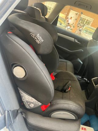 Silla de coche Britax Römer para grupos 1, 2 y 3. Diseñada para acompañar el crecimiento del niño, silla con isofix. En perfecto estado, vendo por cambio de silla, ya le queda pequeña. Mando fotos por privado. En las fotos sale sucia pero ya esta limpia y en perfecto estado para su uso. - Tapicería negra. - Sistema de sujeción seguro. - Reposacabezas ajustable.