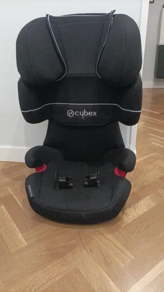 Silla de coche Cybex Gold Solution S-Fix, para coches con y sin Isofix. Grupo 2/3 (15-36 kg), desde los 3 hasta los 12 años aproximadamente. Tapiceria de color Negro (Granite Black) Reposacabezas ajustable en altura y protección lateral avanzado. Está en perfecto estado, usada en un muy pocas ocasiones porque era la silla del segundo coche.