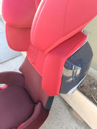 Silla de coche Cybex Pallas 2-Fix en color rojo. Está usada pero en buen estado - Válida para grupos 1/2/3 (9-36 kg). - Incluye reposacabezas y arnés ajustables. - Tapicería de color rojo oscuro.