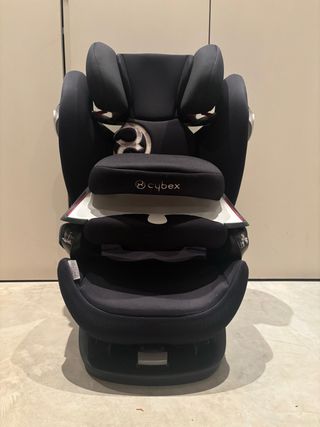 Silla de coche Cybex Pallas-Fix en color negro. - Diseño ergonómico. - Reposacabezas ajustable. - Sistema de seguridad integrado. - Dispone de Isofix. - Se puede desmontar el respaldo quedando solo el asiento. Negociable