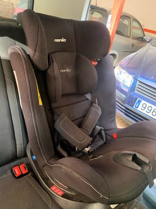 Silla de coche Multigrupo 0+/1/2/3 con ISOFIX Apta para todas las etapas, desde el nacimiento hasta los 36 kg (Grupo 0+/1/2/3). Es una solución integral que acompaña el crecimiento del niño durante toda su infancia. Rotación 360°: Sistema giratorio para facilitar la entrada y salida del niño de forma ergonómica. Seguridad: Instalación mediante sistema ISOFIX. Permite la posición a contramarcha, recomendada por su mayor nivel de seguridad. Excelente estado de conservación. La estructura y los mecanismos funcionan perfectamente. Tanto el cuerpo de la silla como las fundas textiles han sido lavados para mayor comodidad