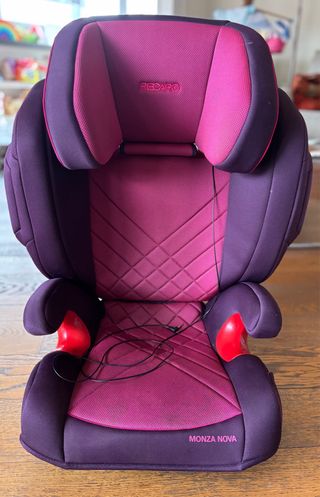 ¡OPORTUNIDAD! Silla de coche para niños del grupo 2 y grupo 3, adecuada para un peso de entre 15 y 36 kg. Para niños de 3 a 12 años, instalación universal con o sin conectores ISOFIX, sistema de sonido integrado. - Diseño en color púrpura y rosa. -Incluye protector asiento con 3 departamentos. - Marca: Recaro Monza Nova 2 (precio original: 255€)