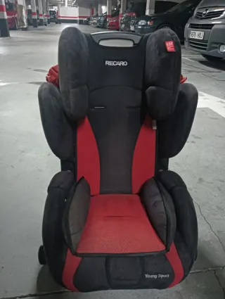 Silla de coche Recaro para grupos 1, 2 y 3. Diseñada para ofrecer seguridad y comodidad. - Tapicería en negro y rojo. - Reposacabezas ajustable. - Protección lateral ASP.