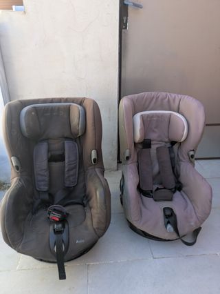 Se venden dos sillas de coche grupo 1 de la marca Bebeconfort. Están usadas pero en buen estado. Se pueden girar 90° para facilitar la entrada. Precio por unidad.