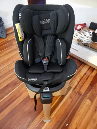 Silla de coche para grupos 0, 1, 2 y 3 (de 0 a 5 años aprox.). Está en muy buen estado, apenas se ha usado. - Válida desde recién nacido hasta los 5 años aproximadamente. - Sistema de sujeción con cinturón de seguridad del coche. - Tapicería negra con detalles grises.
