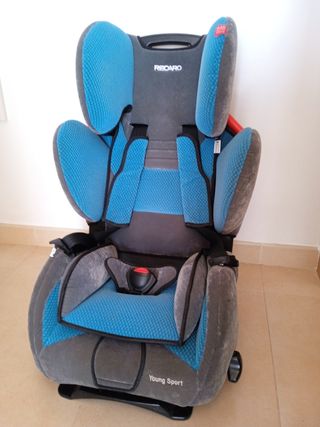 Silla de coche infantil Recaro Young Sport Grupo 1, 2, 3 ( de 9-36kg) Silla muy cómoda,segura, confortable, con varias posiciones de altura y de reposacabezas, según va creciendo el niño, con almohadillas que se pueden quitar. Oportunidad muy bien cuidada!! Y de gran calidad. Con libro de instrucciones.